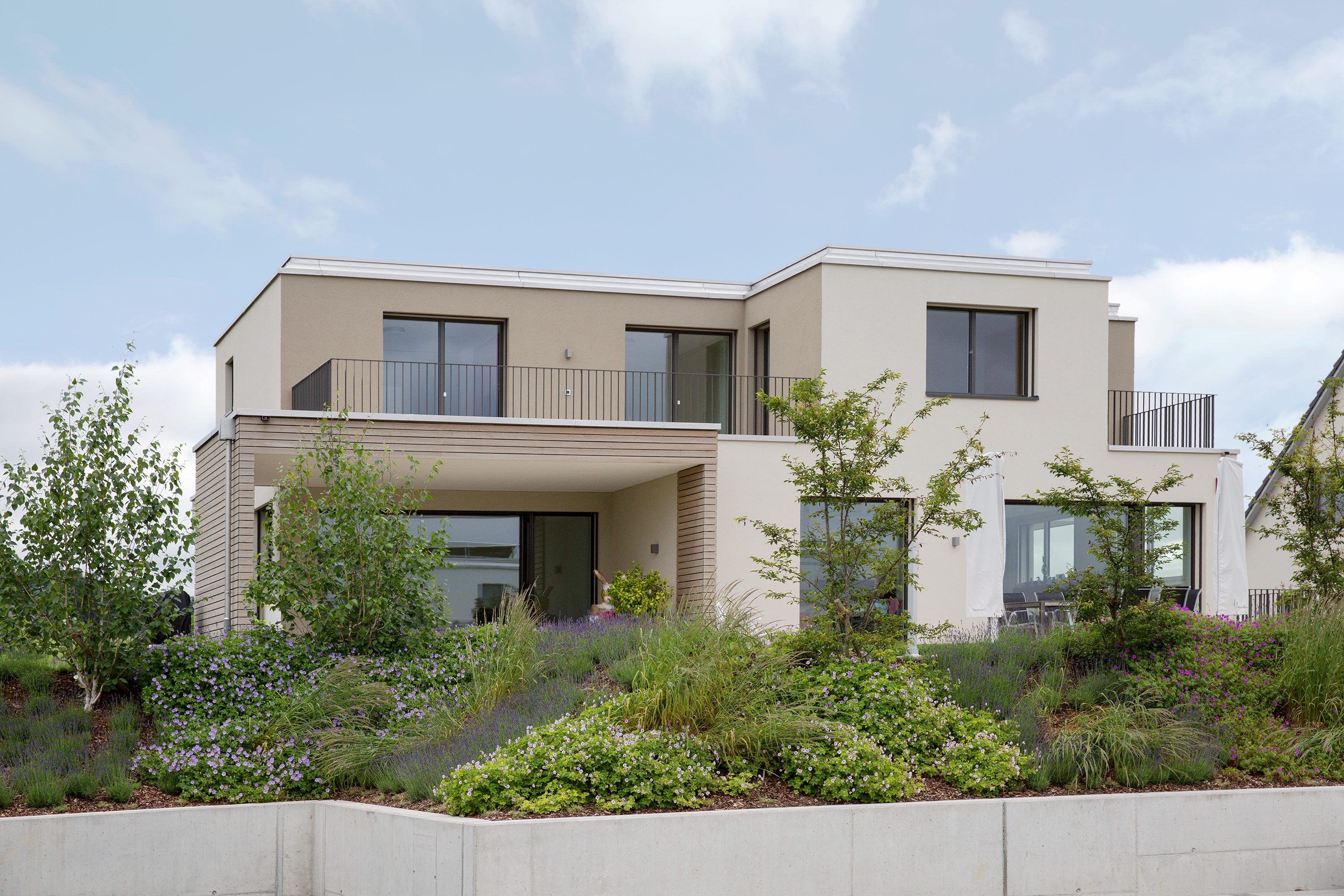 Im ruhig gelegenen und direkt am Waldrand liegenden Blumenbergquartier in Hombrechtikon haben wir sieben Passivhäuser realisiert. Uns wurde ein Grundstück mit einer alten Villa angeboten, auf welchem wir für sieben Familien Platz schaffen konnten. Trotz verdichtetem Bauen bestechen diese sieben Wohneinheiten durch eine maximale Privatsphäre.