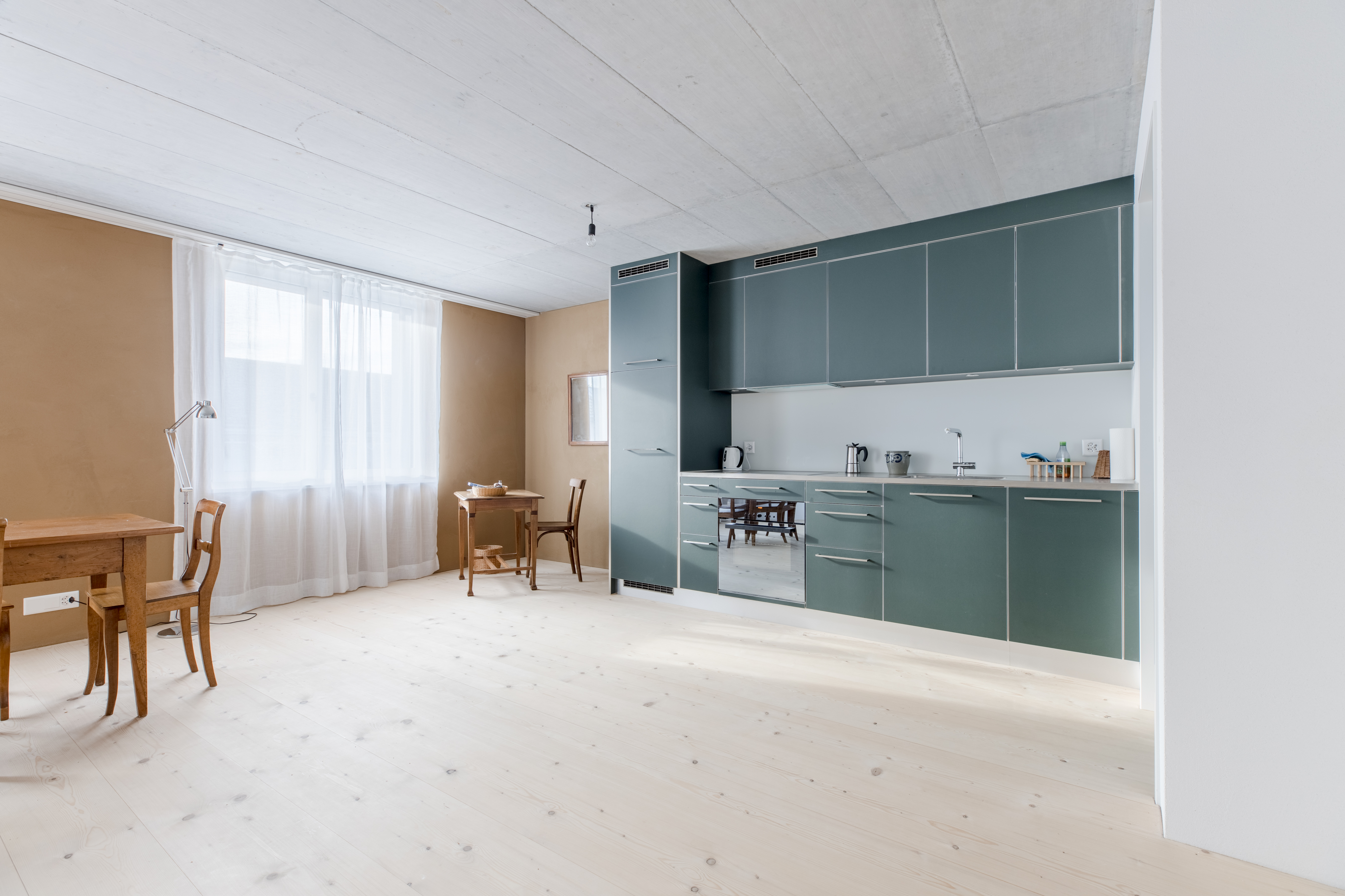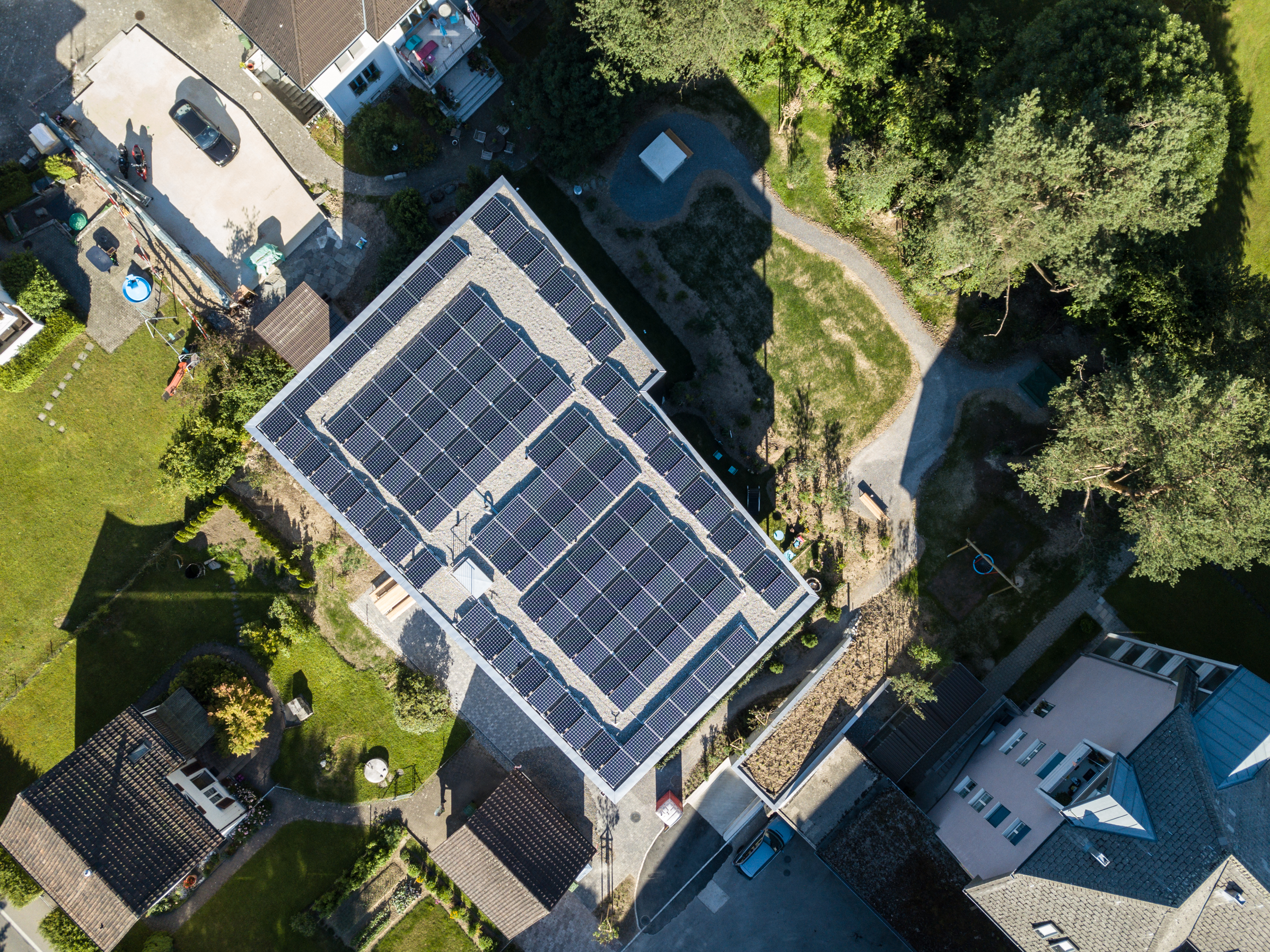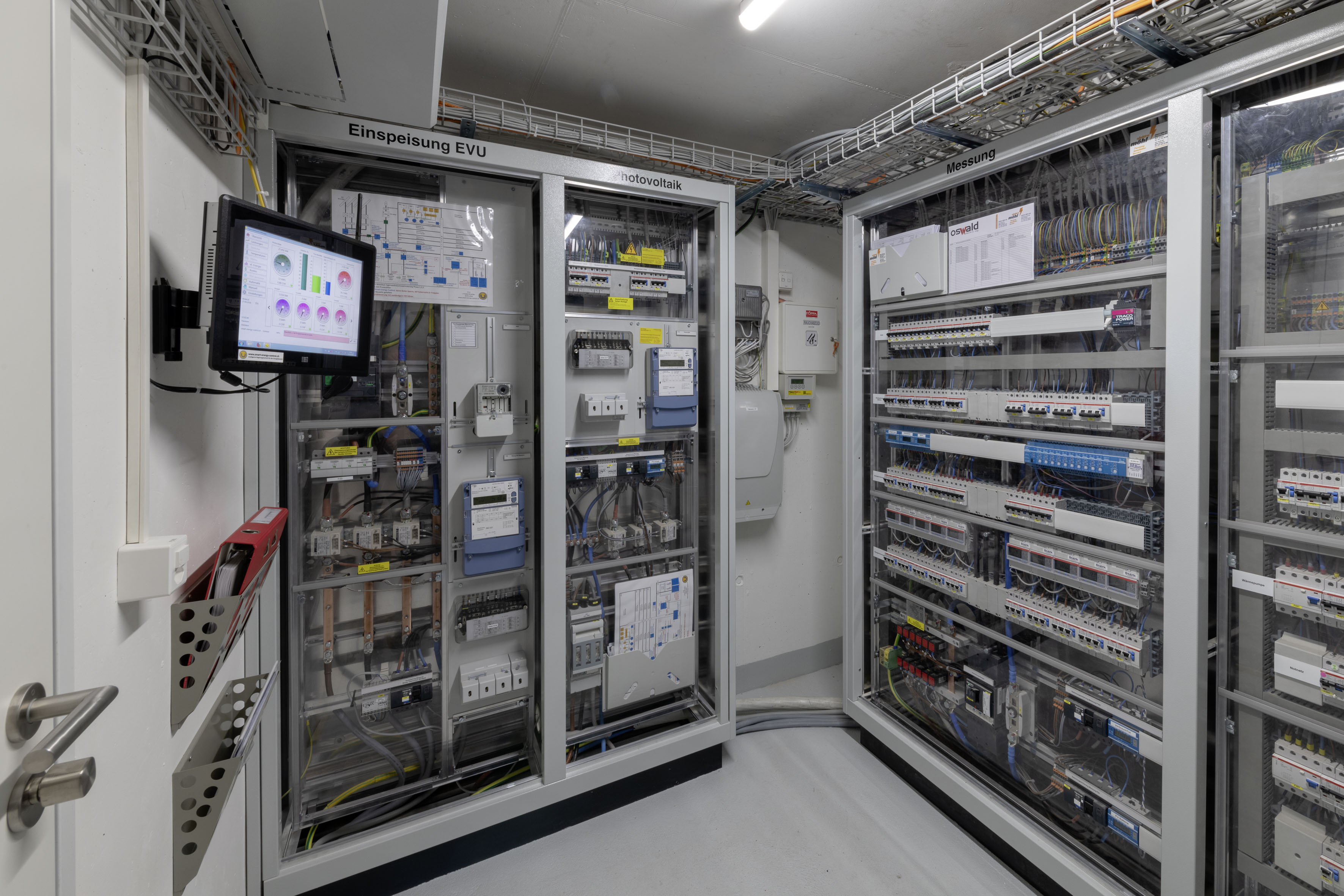 Auf dem Dach und an der Fassade werden über das Jahr rund 20’000 kWh Solarstrom mehr produziert, als das ganze Wohnhaus inklusive Elektroautos verbraucht. Ein ausgeklügelter Eigenverbrauchmanager sowie eine 78 kWh grosse Batterie halten den Anteil des Eigenverbrauchs sehr hoch. Zudem stellen wir bei diesem Wohnhaus ein kostenloses E-Auto zur Verfügung, um die fossilen Fahrten zu reduzieren. Kühlende Lehmwände und viele Naturbaustoffe garantieren ein angenehmes Wohnklima. Eine Regenwasseranlage rundet dieses Leuchtturmprojekt ab.